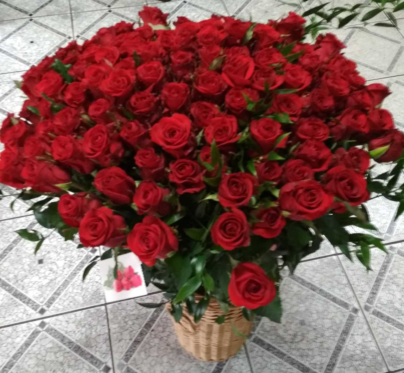 Przyszedł cudowny kosz 100 róż czerwonych dziękuje całej ekpie, która go układała.