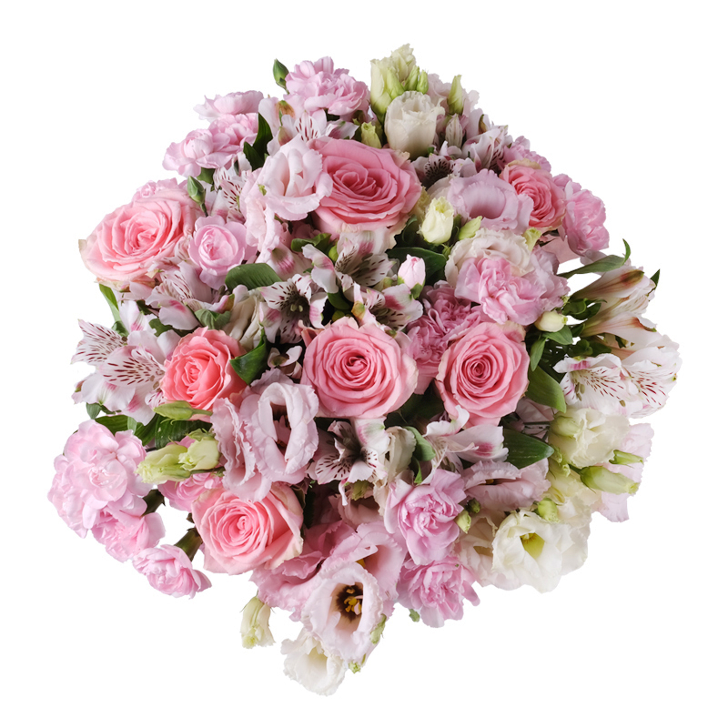 Kwiaty w bukiecie „Siła kobiecości” – róże, eustomy, goździki i alstromerie – idealnie wyrażają kobiecą delikatność. Bilecik z dedykacją doda osobistego tonu.